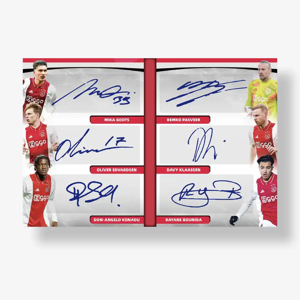 Experience the 2024/25 AFC Ajax season in a whole new way with the official SportTCG x DAKA Premium Trading Cards Hobby Box. This exclusive, club-licensed release has been specially designed for collectors and stands out with its luxurious finish!