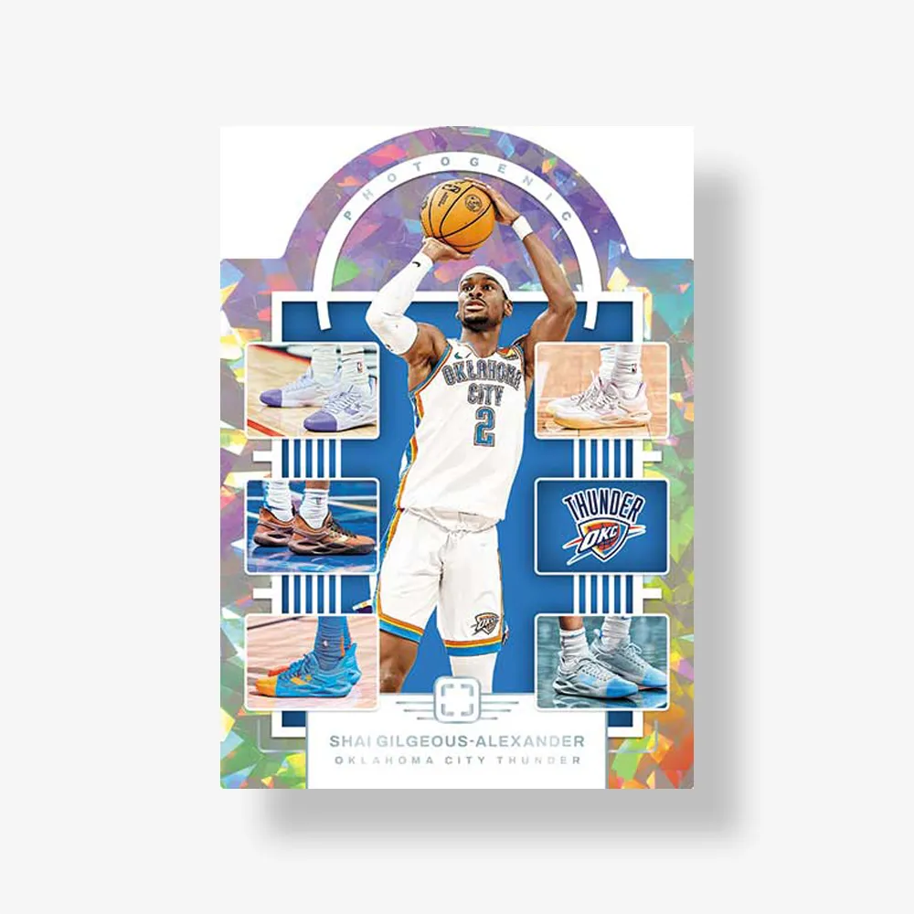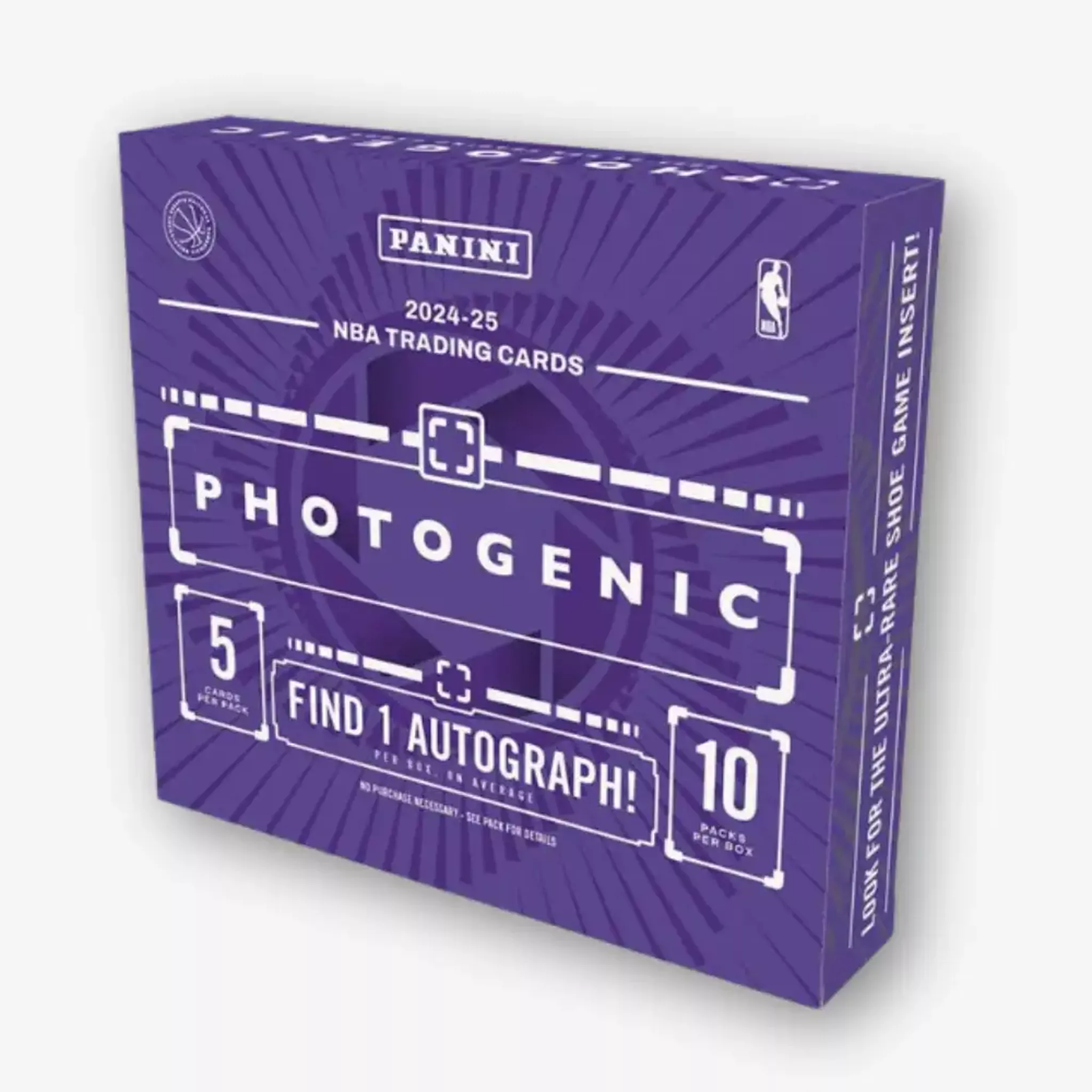 2024-25 Panini PhotoGenic Basketball returns with a focus on striking photography that captures the energy and movement of basketball. The base set features 225 cards, including NBA legends, stars, and rookies. New parallels debut this year: Lightspeed (short print), Stardust (/65), and Groovy (/35). Each box delivers four parallels—one more than last year. The release also includes a variety of inserts highlighting both the game and what surrounds it.