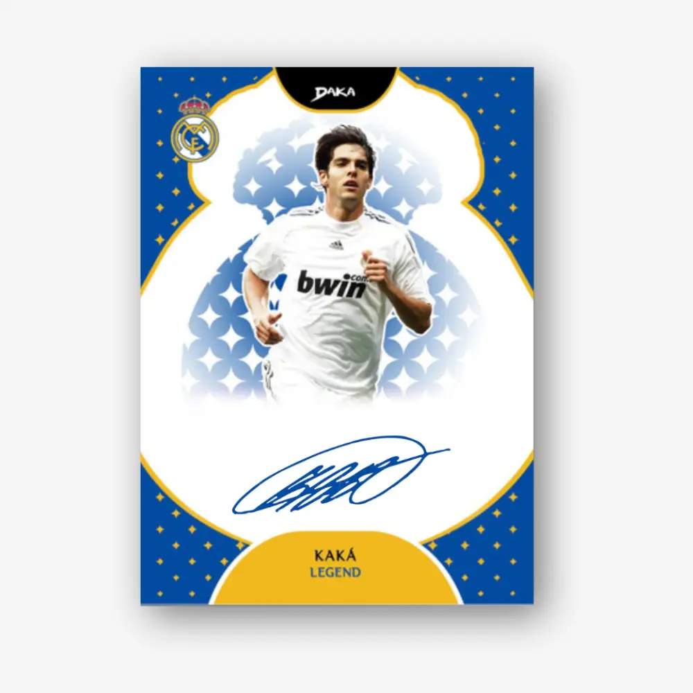 DAKA 2025–26 Real Madrid Top Audience – a trading card collection dedicated to Real Madrid. Each box contains 6 packs with 4 cards per pack, including an average of 3 numbered cards.The set includes base cards, inserts, limited editions, as well as autographs and memorabilia of Real Madrid players and club legends.
