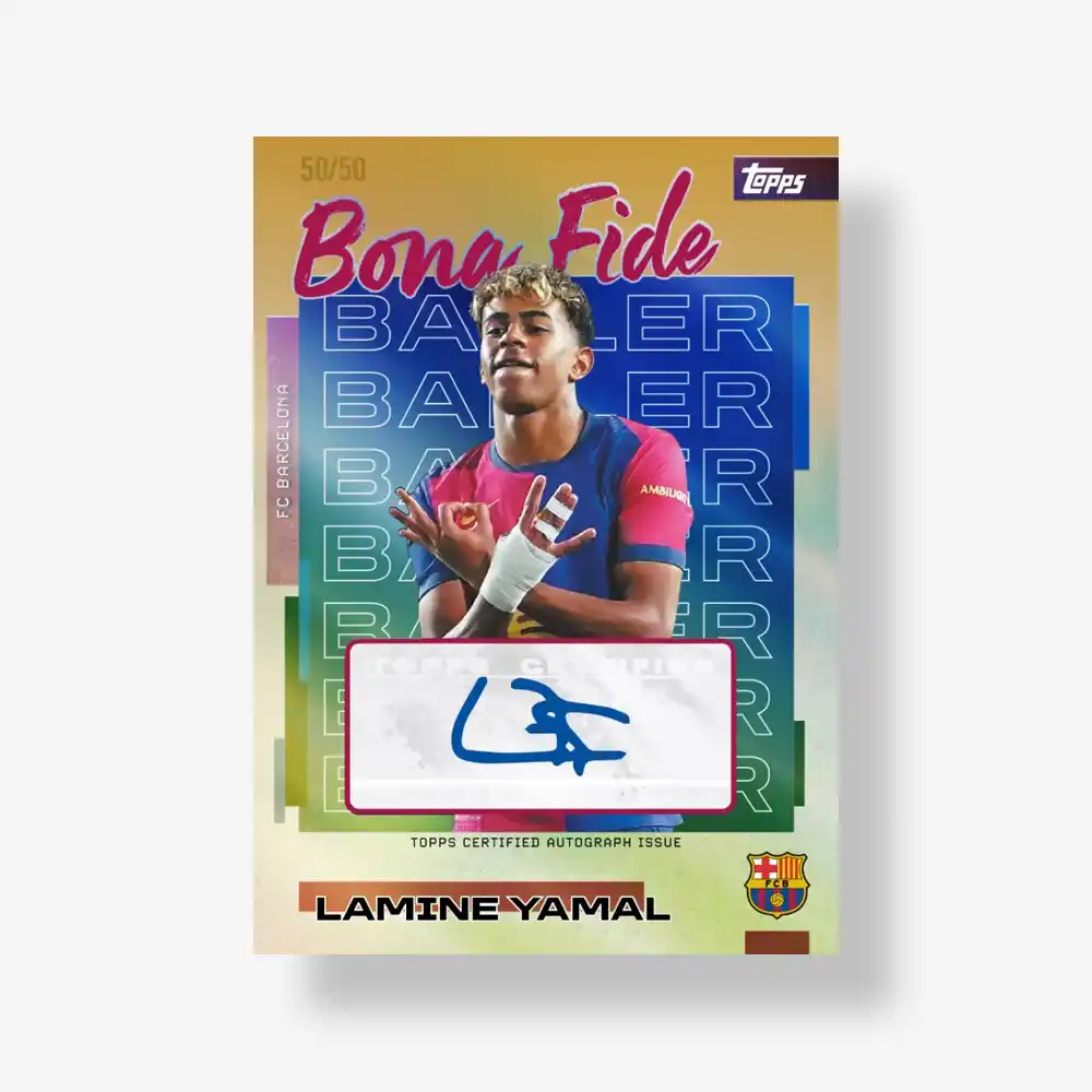 Autograph Cards: Find an Autograph in every two boxes! Chase certified autos from active players and Barça icons across the Base Card and Bona Fide Baller subsets.