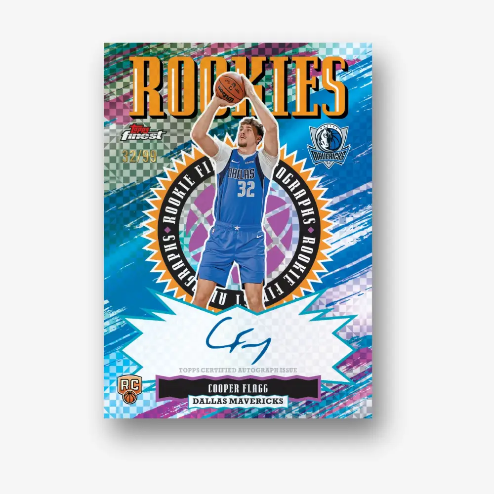 Autographs remain a cornerstone of Finest, highlighted by Finest Autographs, Masters Autographs, Colossal Shots Autographs, and Electrifying Signatures, with the addition of the new Baseline Autographs, bringing a clean, artistic take to on-card ink. Look for Lebron James, Wemby, Cooper Flagg, Kon Kneuppel and legends like Dwyane Wade and Kareem Abdul-Jabbar.