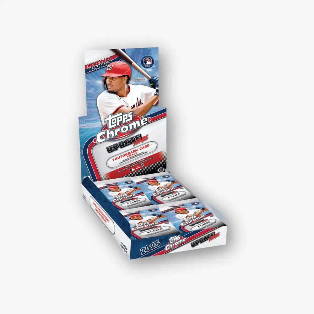 2025 Topps Chrome Baseball Update Series closes out the season with signature shine and a full-throttle checklist packed with rookie call-ups, All-Star moments, and future franchise faces.