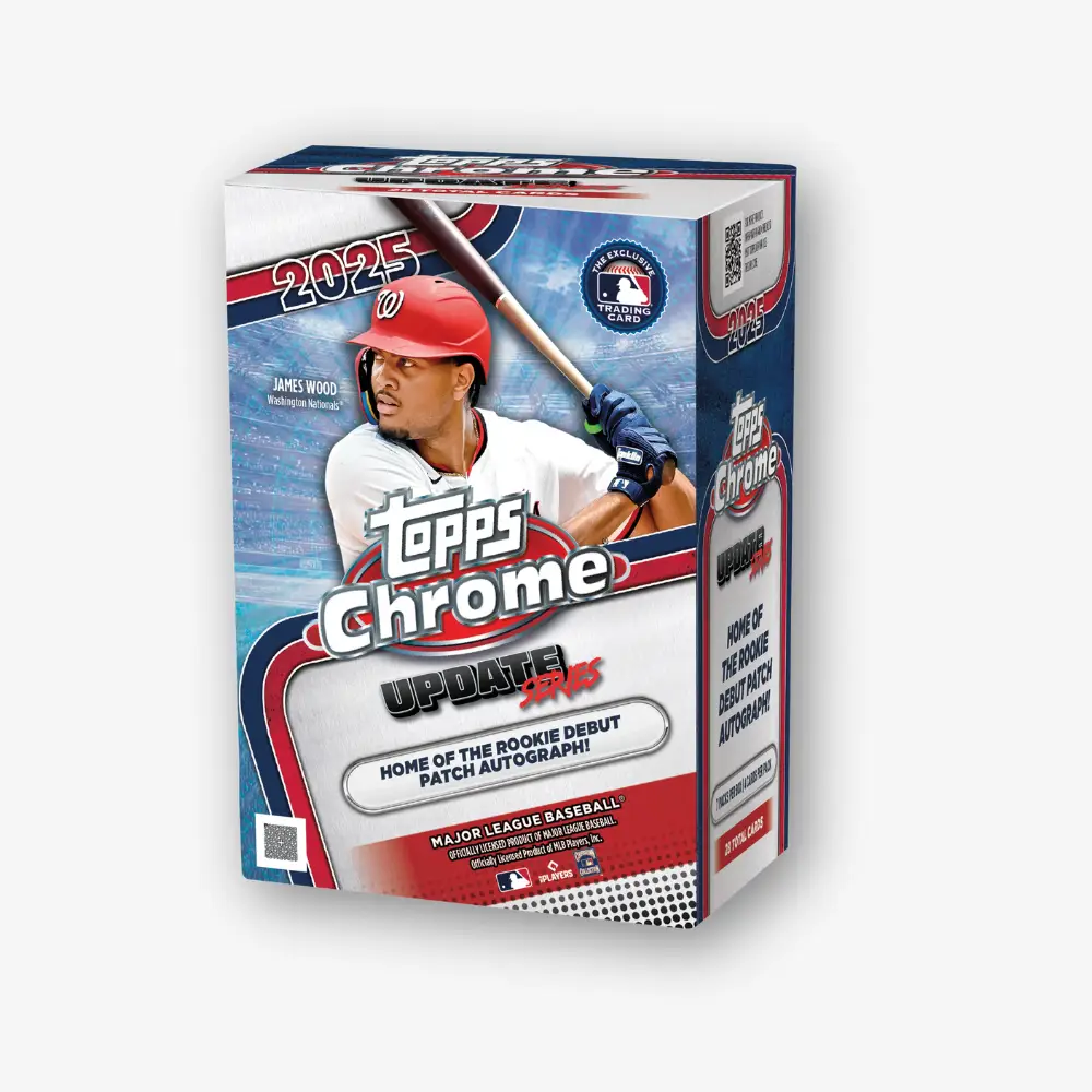 2025 Topps Chrome Baseball Update Series closes out the season with signature shine and a full-throttle checklist packed with rookie call-ups, All-Star moments, and future franchise faces.