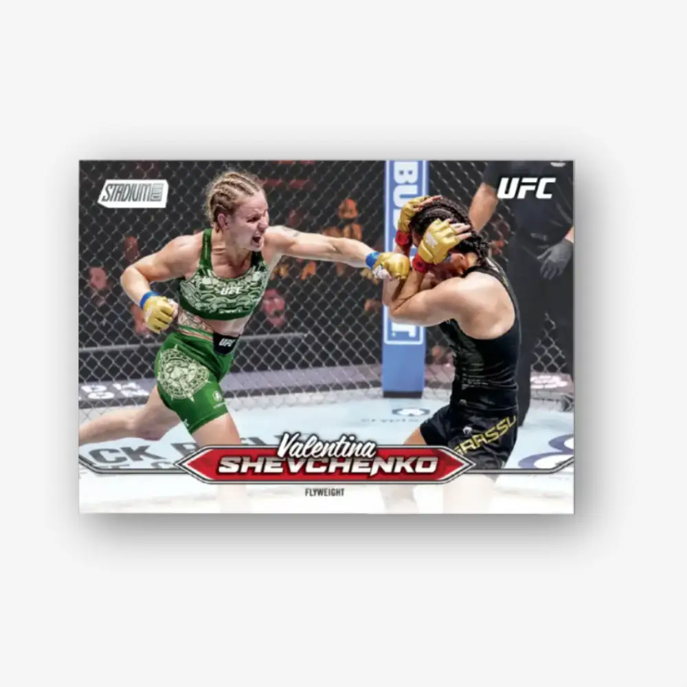 Step into the Octagon like never before with the 2025 UFC Topps Stadium Club Collection—a trading card set that brings the raw power, excitement, and unforgettable moments of UFC to life. Featuring dynamic photography, ultra-high-quality card stock, Chrome technology, and unique parallels, every card captures the intensity of each strike, submission, and knockout with unmatched clarity and energy.