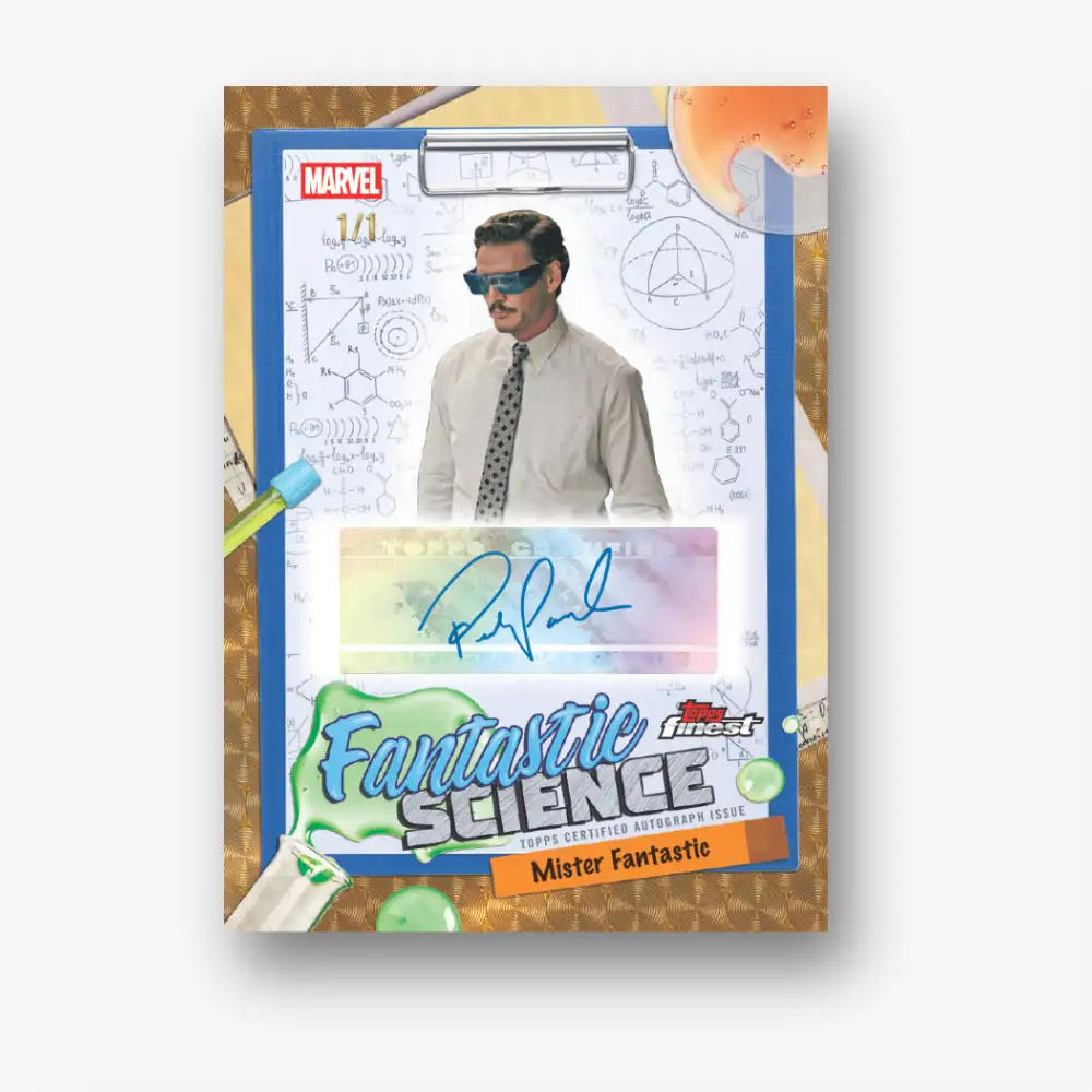 Celebrate 65 years of Marvel’s First Family with 2026 Topps Finest: Fantastic Four 65th Anniversary, a trading card product that combines the team’s legendary comic history with the thrilling adventures of Marvel Studios’ The Fantastic Four: First Steps. Collect cards featuring modern cinematic characters and look for autographs from Pedro Pascal, Vanessa Kirby, and other members of the film’s cast. Then dive into the team’s comic origins and discover ultra-rare cut signatures from legendary creators Jack Kirby and Stan Lee! Additionally, each card in the product shines with a bold blend of classic and contemporary Topps Finest designs, while a selection of exclusive original art by acclaimed artists, such as Adi Granov, adds an artistic flair. From iconic comic moments to modern film heroes, this set is the ultimate tribute to the Fantastic Four.