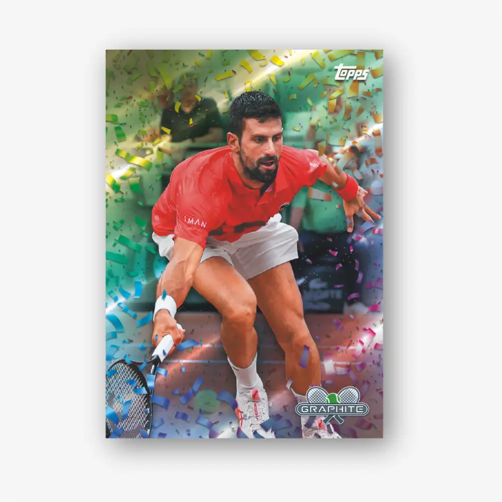 Back for its second release, 2026 Topps Graphite Tennis Hobby returns with a bold black Chrome finish and an expanded checklist that celebrates the global game. Printed on striking Chrome® stock, this 200-card base set features today’s biggest stars, rising rookies, and iconic legends in a sleek, silver-toned design that puts the focus on power, precision, and presence.