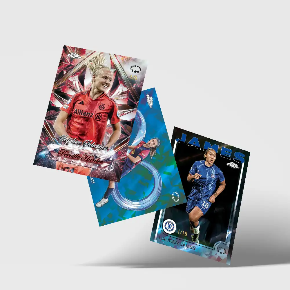 Topps Chrome UEFA Women’s Champions League returns in stunning fashion with the highly sought-after Sapphire Edition 2024/25 — an exclusive premium release highlighting the biggest talents and brightest stars of women’s football.
