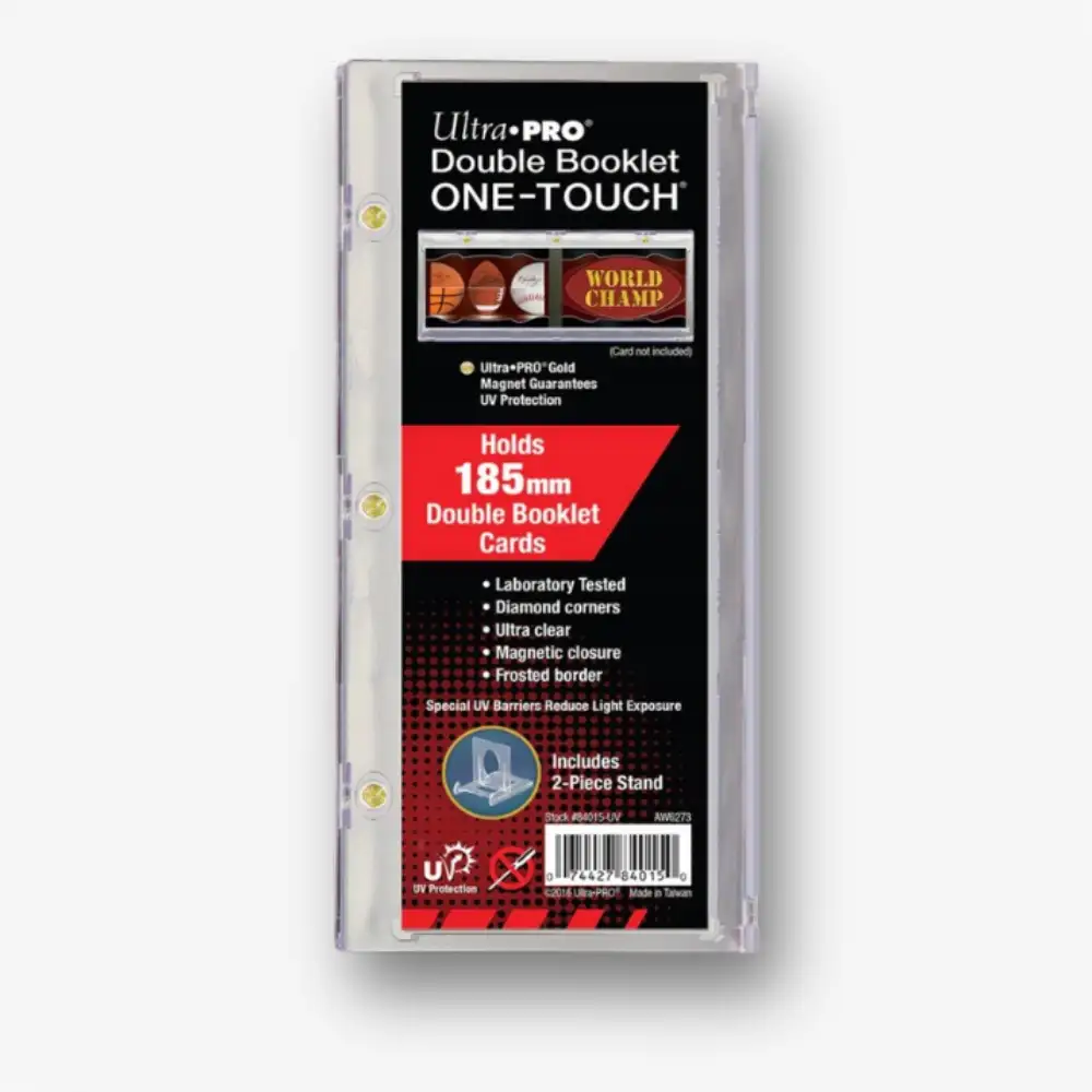 The magnetic ONE-TOUCH holder by Ultra PRO is designed for secure protection and display of two-piece booklet cards measuring 185 mm in length.